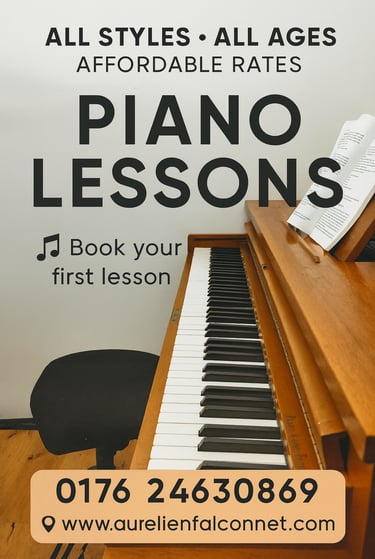 Whether you want to explore classical pieces, modern pop, improvisation, or simply play your favorite songs, each lesson is designed to build strong technique while keeping creativity at the center. My approach combines clear guidance, practical exercises, and musical fun to help you grow at your own pace. Whether you're picking up an instrument for the first time or looking to deepen your skills, I’ll help you discover the joy of making music.
